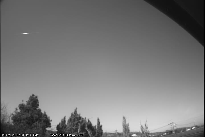 ★2021年3月1日10:05:56(JST)出現、昼間流星である可能性あり、飛行機かもしれない、
