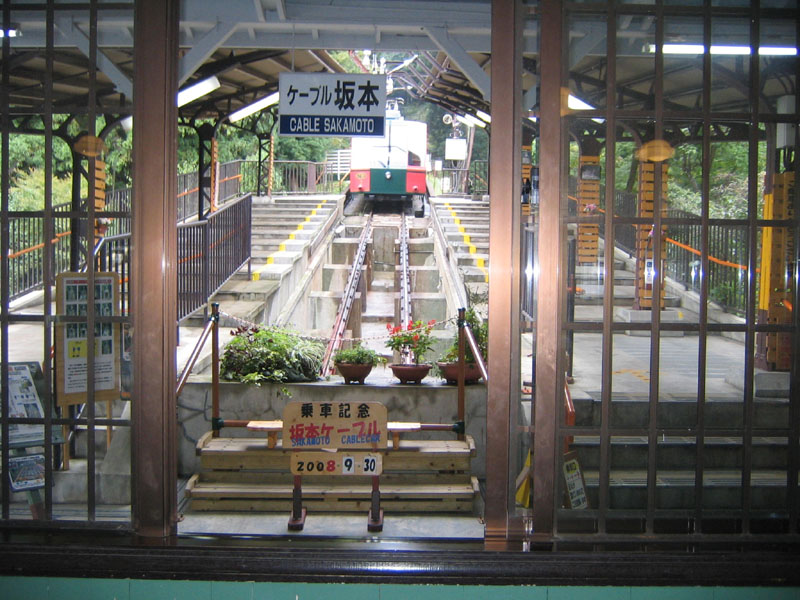 交通手段は、JR比叡山坂本駅からバスで、ケーブル坂本駅へ、左の画像のケーブルカーで山上のケーブル延暦寺駅へ